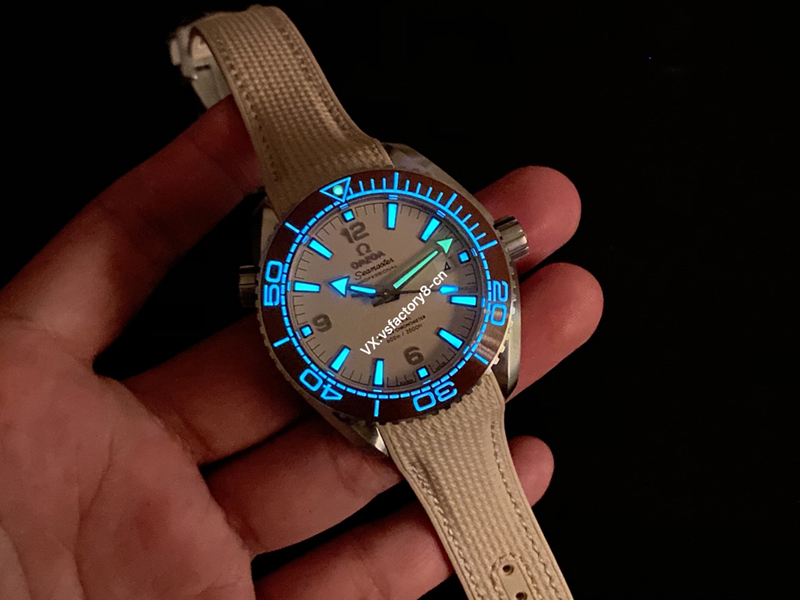 3:VS廠在此款歐米茄沙丘色海馬600米注重了很大的精力,特別是表圈,為了達(dá)到了跟正品一致,采購(gòu)了正品進(jìn)行還原,青銅色氮化硅陶瓷表圈,亦經(jīng)過(guò)拉絲處理,其上飾有液態(tài)陶瓷潛水刻度,并覆有Super-LumiNova夜光涂層。VS廠歐米茄熟練掌握陶瓷表圈技術(shù)已經(jīng)七年時(shí)間之久,完全做到了對(duì)版,其真正名副其實(shí)的天花板級(jí)別。