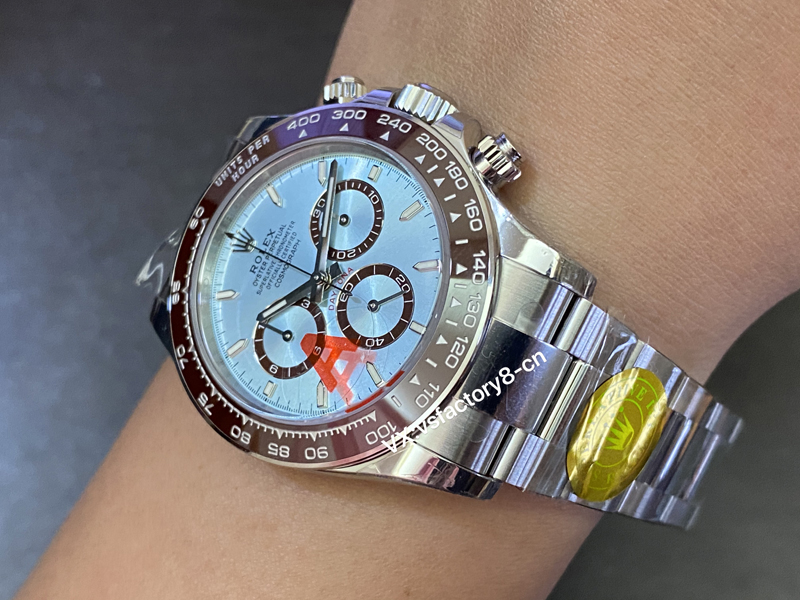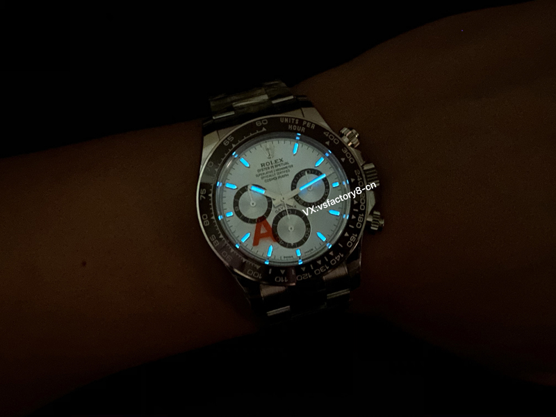 4:VS廠(chǎng)勞力士迪通拿冰藍(lán)迪在外觀上也讓人眼前一亮,獨(dú)特的冰藍(lán)色表盤(pán)仿佛將北極的冰雪封存于此,既經(jīng)典又現(xiàn)代,絕對(duì)是復(fù)刻表入手的一大亮點(diǎn),冰藍(lán)色表盤(pán)上,真正的高還原,并不會(huì)像其他廠(chǎng)呈現(xiàn)泛綠,而VS廠(chǎng)完完全全呈現(xiàn)出冰藍(lán)色,這一點(diǎn)呈現(xiàn)出最頂尖的復(fù)刻技術(shù),冰藍(lán)色表盤(pán)搭配對(duì)比鮮明的黑色計(jì)時(shí)針盤(pán),增強(qiáng)了整體的層次感。時(shí)、分針的設(shè)計(jì)獨(dú)特,采用了尖銳的造型,更加易于讀取時(shí)間,同時(shí),采納了進(jìn)口瑞士C1+C3夜光涂層的應(yīng)用,使表盤(pán)在昏暗環(huán)境下依然清晰可讀。