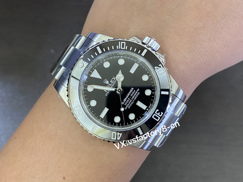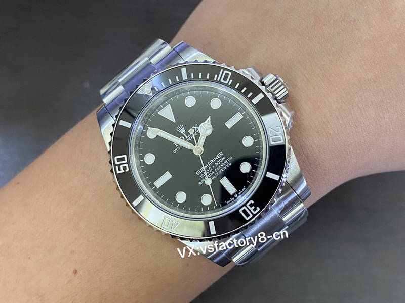 3:VS廠勞力士無歷黑水鬼復刻表,不僅在外觀上力求完美,還在表圈上進行了相應的提升,VS表廠獨家燒制的黑色陶瓷表圈,與正品幾乎一致,特別是表圈的白色潛水計時刻度,細節(jié)非常精湛,均勻無顆粒瑕疵,十二點位置夜明珠的乳白非常剔透,夜明珠的效果也完全還原一致正品,非常值得入手。