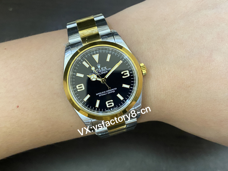 1:VS廠勞力士36mm間金探險(xiǎn)家探一復(fù)刻表外觀的細(xì)節(jié)做工還原表現(xiàn)非常出色,表殼的打磨工藝非常精細(xì),呈現(xiàn)出一種鏡面光澤感,表殼使用的904L精鋼材料經(jīng)得起時(shí)間的考驗(yàn),具有良好的防銹性,此外,表殼的表圈VS工廠還原一致黃金圈設(shè)計(jì)工藝,材質(zhì)上904L精鋼鍛造的表圈,后續(xù)經(jīng)過(guò)真空電鍍黃金,經(jīng)過(guò)拋光工藝處理,呈現(xiàn)出黃金的色澤。