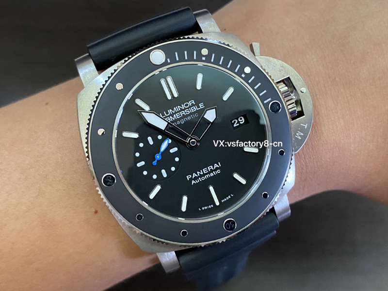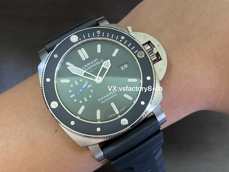 6:VS廠沛納海pam1389復刻表潛行系列搭配了與正品一致黑色橡表帶,在選材上同樣別具匠心,表帶質感細膩,且表面具備一定的防水性能,表帶的寬度和厚度都與正品相符,搭配鈦金屬表扣設計,使得復刻手表在手腕上更為貼合,有助于提升佩戴的舒適性。