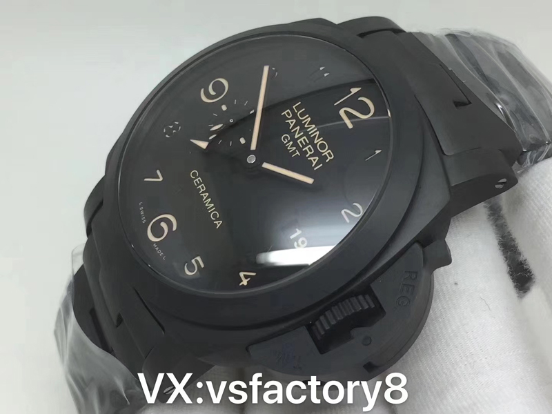 2:VS廠沛納海pam438復(fù)刻表在陶瓷表殼的打磨和拋光工藝上進行了多次試驗,以確保黑陶瓷表殼的光滑度和顏色達到了最高相似還原,無論是陽光下的折射還是在暗光中的質(zhì)感,VS廠都力求做到盡善盡美,同時,VS廠黑陶瓷沛納海pam438表殼右側(cè)還原了正版一致黑陶瓷“護橋”還原設(shè)計,而護橋上刻字細節(jié)非常立體,可以看得出VS廠還原要強之心,而護橋也為了保護內(nèi)部把頭無法受損。