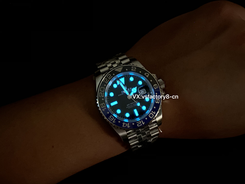 3:表圈的還原材質(zhì),像以前的勞力士國米圈幾乎都是拼接圈,特別容易發(fā)現(xiàn)破綻和一眼假,而對于這一項技術,VS表廠已經(jīng)是完美的攻破,獨家研發(fā)燒制的黑藍雙色一體圈,做到了完全對版細節(jié)工藝,而且在藍色部分做到了幾乎一致顏色,無法看出破綻和一眼假,實施了雙向功能表圈設計,表圈上的白色刻度做工非常均勻,一眼看得出VS廠勞力士國米圈復刻腕表是完美稱得起“天花板”稱號。