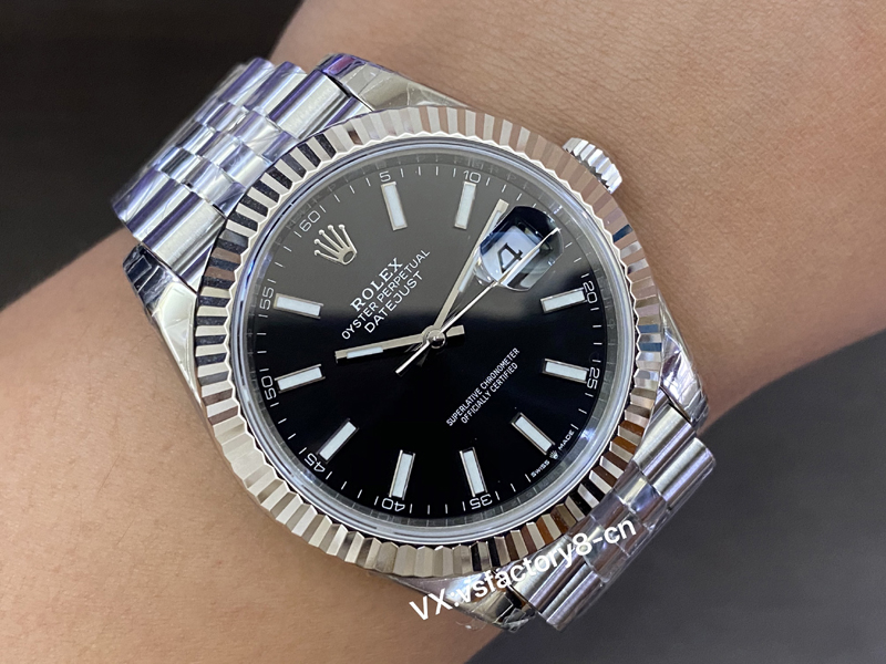 4:VS廠在勞力士日志表盤還原工藝非常精湛,采用了一致黑色還原,我們都知道黑色表盤是無存在有色差現(xiàn)象,分針和時(shí)針以及秒針經(jīng)過細(xì)致的打磨,展現(xiàn)出了圓潤,刻度的邊緣也經(jīng)過處理,可以看出VS廠在表盤的細(xì)節(jié)非常用心,表盤印刷排序一致原版,十二點(diǎn)大皇冠LOGO復(fù)刻的非常立體,指針和刻度填充原版一致瑞士夜光涂層,效果一致原版。