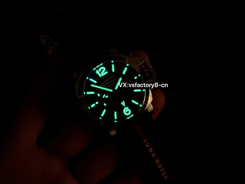 4:VS廠沛納海pam1404也完美還原了藍色表盤復(fù)刻,九點位置采用了紅色的小秒針,搭配藍色表盤識別度非常清晰,視覺感很強烈,表盤的英文印刷整體細節(jié)工藝很有立體感,可以看出表盤的各方面細節(jié)很用心,復(fù)刻表的時標和指針均進行了夜光處理,在暗環(huán)境中亦能清晰可見。
