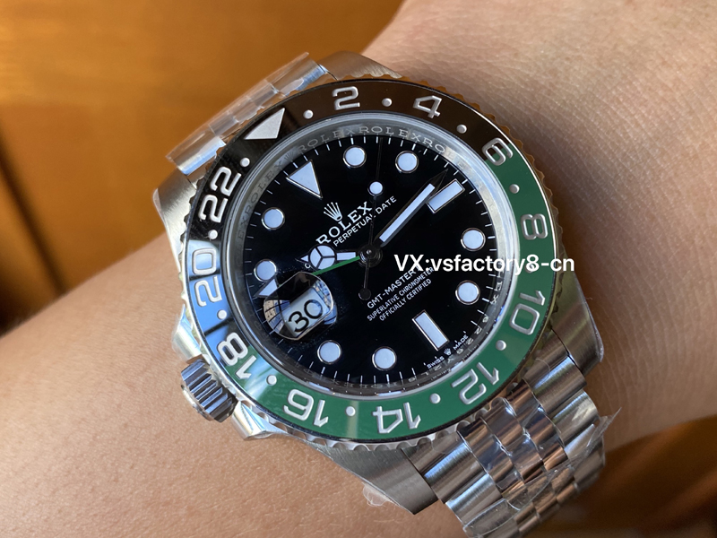 2:VS廠勞力士雪碧圈左撇子格林尼治復刻版的外觀還原設計完美演繹到底了原版一致工藝,表殼采取了904L精鋼材質鍛造,使其堅固耐磨,表殼的拋光處理光滑而細膩,手握時更顯厚重與質感,表殼的厚度以及直徑都按照原版復制,完美還原對版。