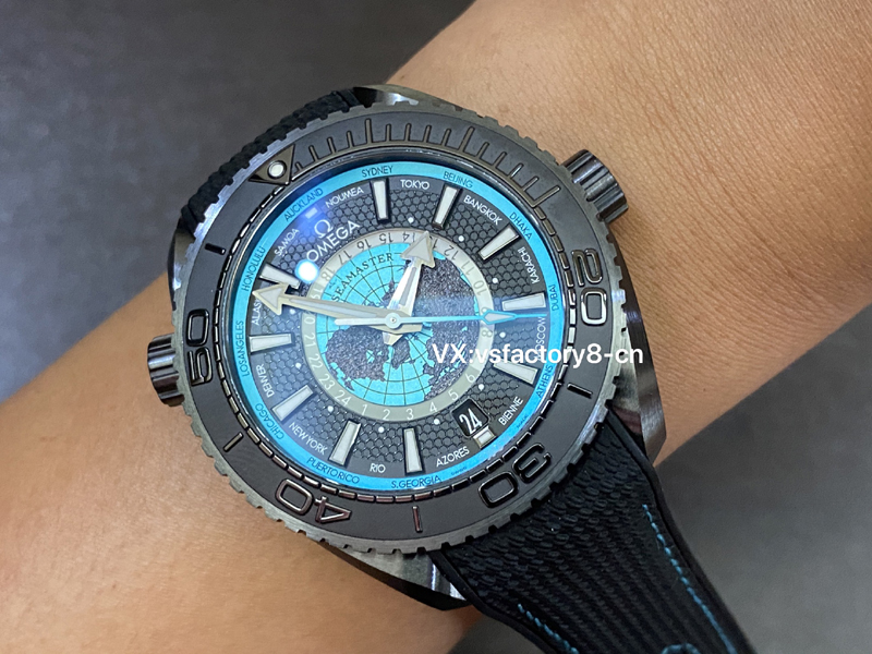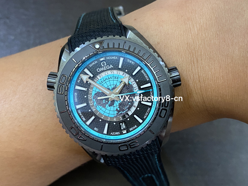 VS廠歐米茄綠松石世界時(shí)全陶瓷海馬600米復(fù)刻表實(shí)拍圖