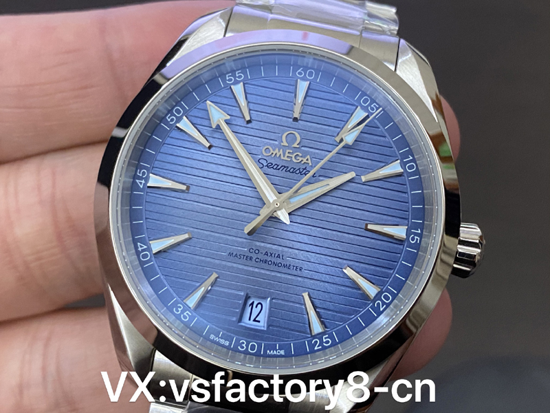 3:VS廠在歐米茄冰藍(lán)面海馬150米復(fù)刻表的表盤設(shè)計(jì)屬實(shí)精湛,柚木淺藍(lán)的表盤采用PVD涂層技術(shù)并覆以漆面,以打造獨(dú)特的Summer Blue漸變表盤,呈現(xiàn)出太陽(yáng)射線的打磨效果,表盤飾有“柚木”紋理,在表盤的時(shí)針和指針復(fù)刻還原設(shè)計(jì)上,VS廠選擇了經(jīng)典的鍍銠時(shí)標(biāo)和指針設(shè)計(jì)還原,鍍銠指針和小時(shí)刻度則覆以獨(dú)特的淺藍(lán)色Super-LumiNova夜光涂層,與表盤顏色相呼應(yīng),表盤的所以細(xì)節(jié)做工呈現(xiàn)出非常值得入手。