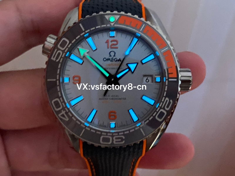 5:VS廠在歐米茄四分之一橙海馬600米的表盤復(fù)刻一致灰色還原,六,九,十二設(shè)有橙色阿拉伯?dāng)?shù)字,其表盤中間復(fù)刻一致歐米茄LOGO,表盤英文字體非常立體,尤其是在指針和刻度的處理上,均采用特殊的涂層,讓其在微弱光線下也能反射出亮麗的光澤,增強(qiáng)了整體的視覺效果。同時(shí),表盤的覆層也經(jīng)過了抗刮處理,表盤的所有細(xì)節(jié)處理的非常恰當(dāng)。