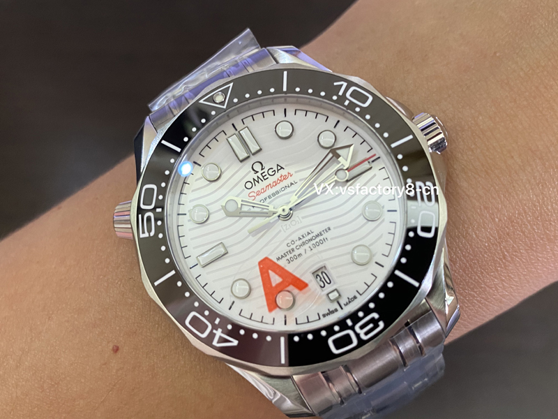 3:VS廠歐米茄熊貓色海馬300米丹東8800機V4版在外觀上真正還原了原版,特別是表盤,復刻還原一致白色表盤設計,與表圈相呼應,被稱為熊貓色,表盤中央的秒針尖頭呈現(xiàn)出鮮艷的紅色,表盤上,時標和指針采用了夜光設計,特別是刻度與指針打磨圓潤,表盤上的英文印刷細節(jié)處理的非常精湛,讓人非??隙ㄍ庥^細節(jié)做工非常值得入手。