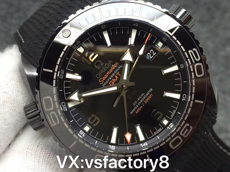 4:值得一提的是,VS廠歐米茄深海之黑海馬600米表盤工藝細節(jié)還原設(shè)計非??季浚扇×嗽嬉恢?nbsp;黑色的拋光陶瓷表盤,時針、分針、秒針、GMT指針四針同軸,指針和小時刻度皆由白色18K金打造,其表面均覆瑞士夜光涂層,呈現(xiàn)綠色之外,其余指針與刻度均呈現(xiàn)藍色光芒,上面涂層的質(zhì)量上,經(jīng)過了多重工藝處理,既增強了耐磨損性,又讓整體表面光澤感十足,做到了原汁原味,也的確是非常值得入手。