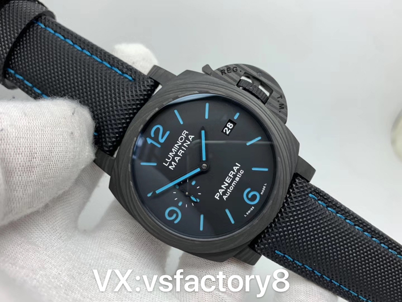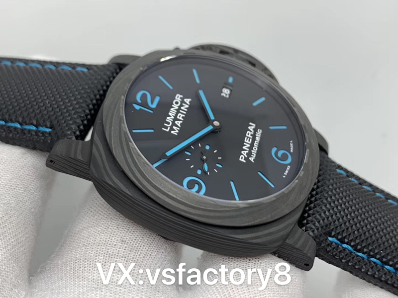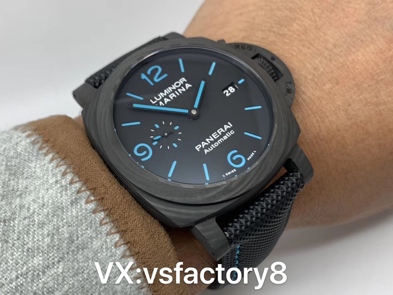 VS廠(chǎng)手表官網(wǎng)2020年新力作,沛納海PAM1661碳纖維殼,輕量化設(shè)計(jì),適合夏天佩戴,44x14.5mm,復(fù)刻P.9001自動(dòng)機(jī)械機(jī)芯,碳纖維表殼,藍(lán)寶石鏡面,夜光表盤(pán)和指針,合成防水材質(zhì)表帶,針扣,防水大于50米!