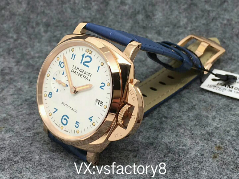 VS廠新款沛納海PAM756限量款,最小直徑的沛,女生也可帶,38x13mm,改OP.XXXIV自動機械機芯,316精鋼表殼鍍紅金,藍寶石鏡面,超級夜光,牛皮表帶,針扣,生活防水!