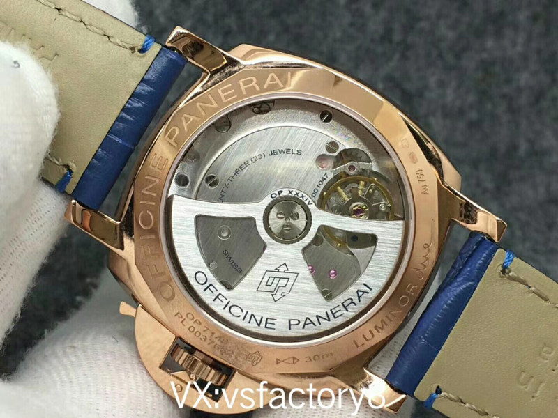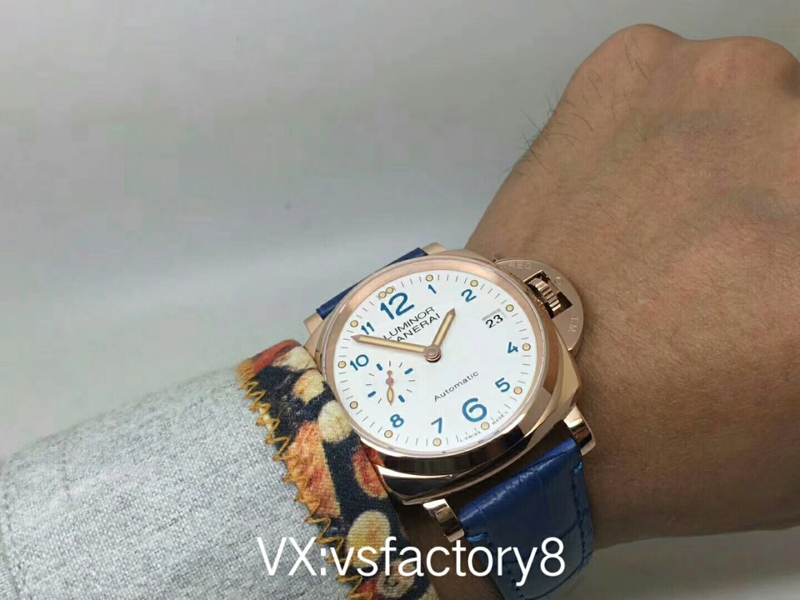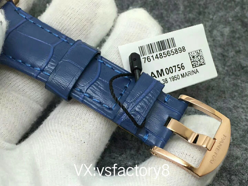 VS廠沛納海PAM756限量發(fā)售:VS廠沛納海LUMINOR DUE系列PAM00756腕表,同步正品一直38mm紅金表殼,象牙白色表盤,自動機械一體機芯,藍色牛皮表帶,一款適合亞洲手腕的紅金腕表。