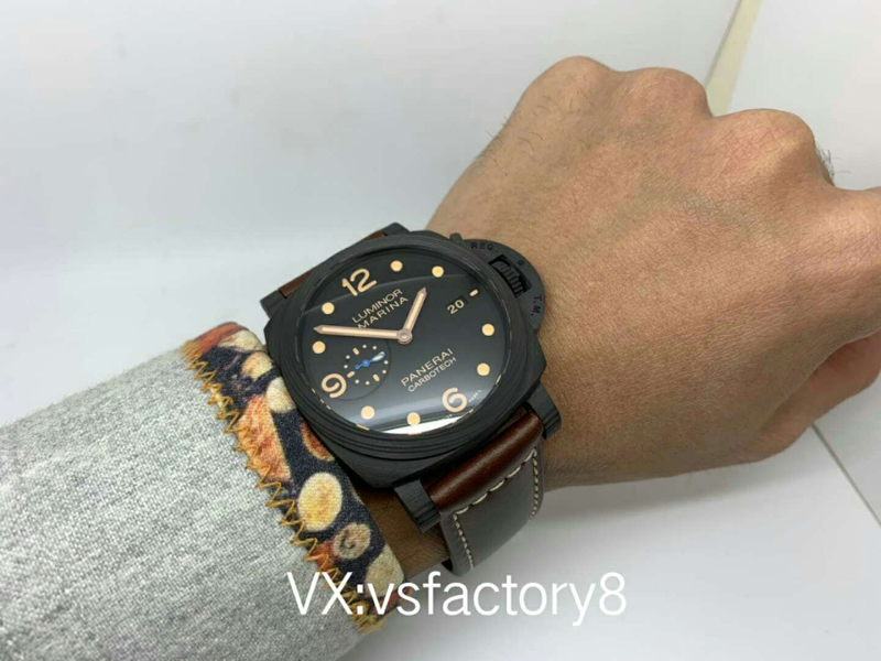 VS廠沛納海PAM661碳纖維殼,全新表殼工藝,7層碳纖維更為致密,44mm 最新版P.9010自動(dòng)機(jī)械機(jī)芯,碳纖維表殼,藍(lán)寶石鏡面,夜光表盤和指針,牛皮表帶,針扣,防水大于100米!