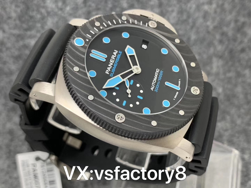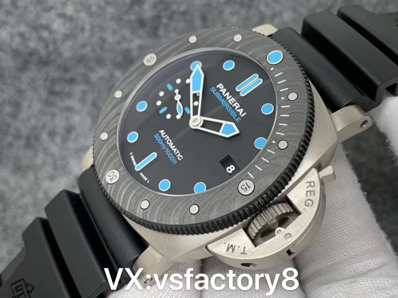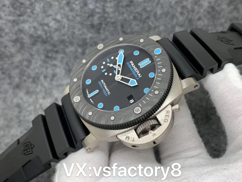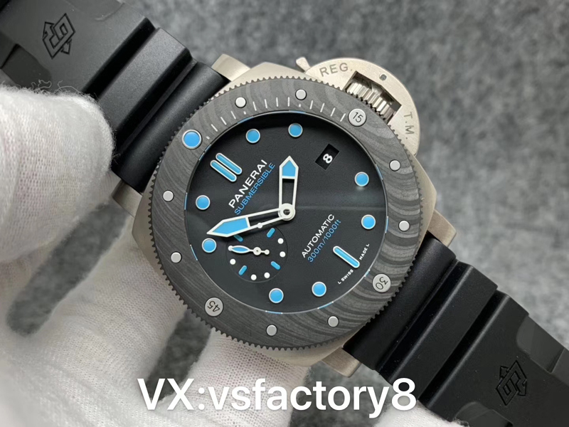VS廠官網(wǎng)新品:VS廠沛納海PAM00799 ,47mm ,CARBOTECH碳纖維旋轉(zhuǎn)表圈,黑色表盤,藍寶石玻璃魚眼,自動上鏈機械機芯,橡膠表帶,鍛造碳圈有著它獨特的紋理個性,組合堅固耐用的鈦金屬表殼,專業(yè)獨特的美學(xué)風格,更好地將堅固和輕盈集于一身,更輕卻更硬。