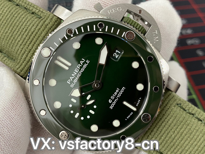 2022年(VS工廠)旗下SBF廠新款:VS廠復(fù)刻表沛納海PAM1287實(shí)拍圖,首款采用拋光圈口,表圈透出翡翠般的光澤。翡翠綠拋光漸變表盤,詮釋時(shí)間的層次感。