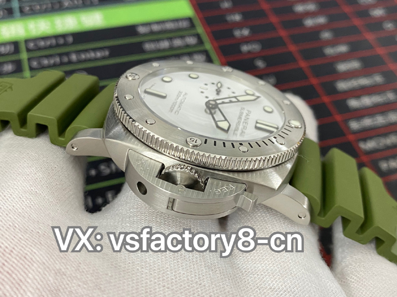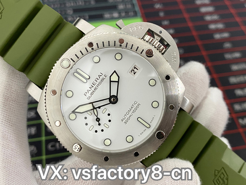 2022年(VS廠手表官網(wǎng))旗下 SBF廠新款:VS廠沛納海復(fù)刻表PAM1226 44毫米,白色表盤搭配綠色表帶,沿襲潛行系列標志性設(shè)計及性能,適配露營、遠足、登山、深潛等各種場景;