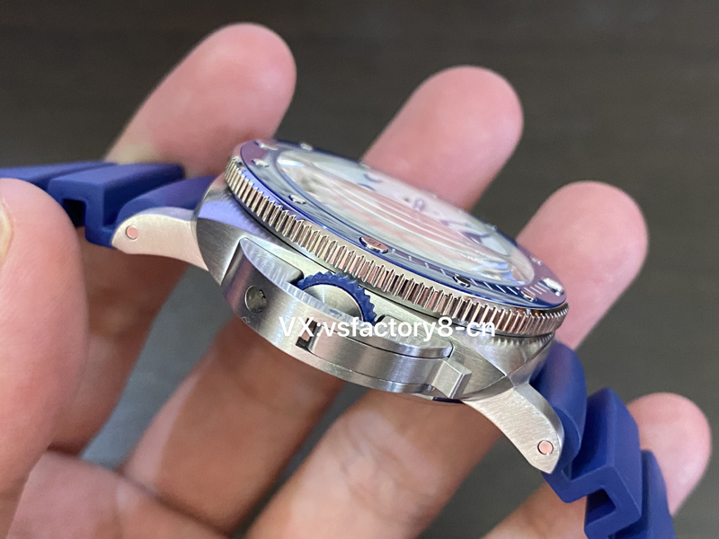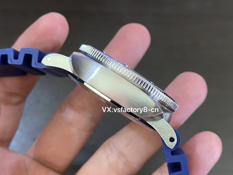 VS工廠(chǎng)入手原裝正版沛納海pam1696進(jìn)行開(kāi)版制作,拋光式藍(lán)色表圈精湛無(wú)比,表圈刻度細(xì)節(jié)做工完善。