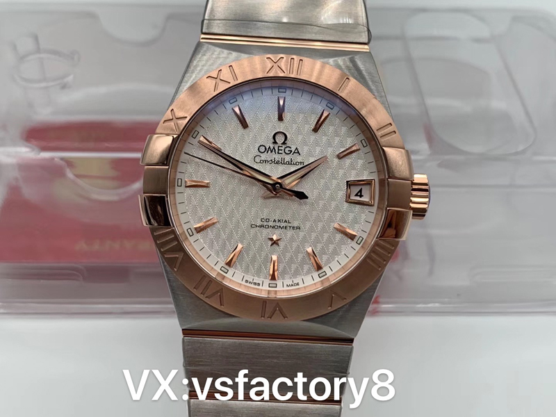 VS廠官網(wǎng)2019年新品歐米茄間玫格紋條釘白面星座才是歐米茄的精髓。