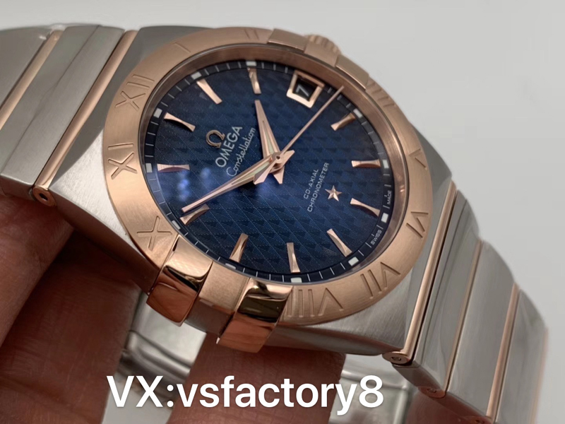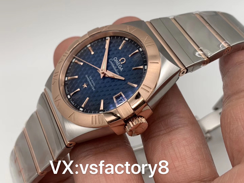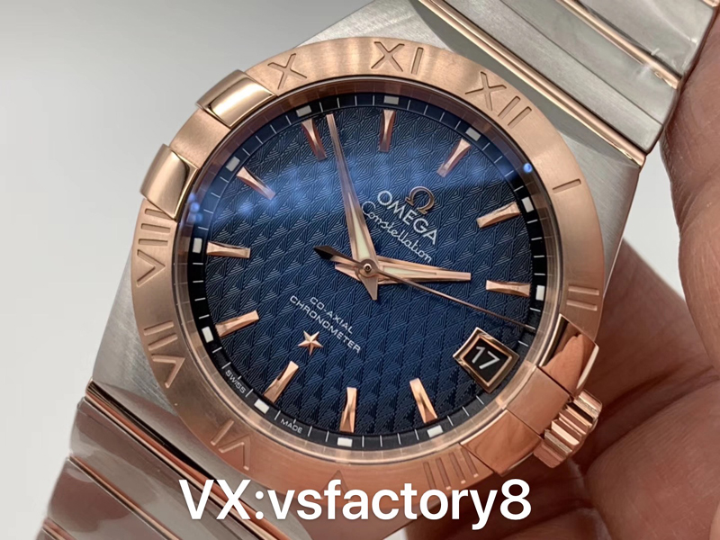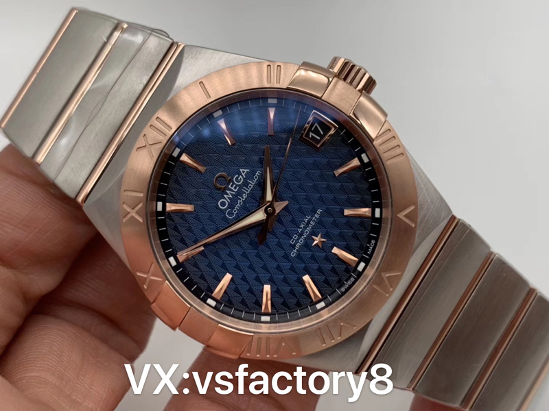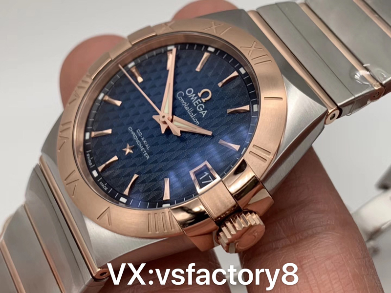 VS廠官網(wǎng)2019年新品歐米茄間玫條釘格紋藍面星座才是歐米茄的精髓。