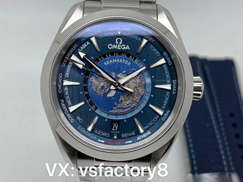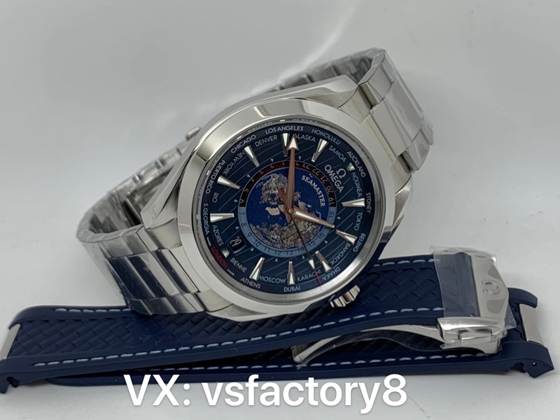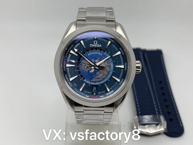 VS廠(chǎng)歐米茄藍(lán)面世界時(shí)海馬150米43MM Aqua Terra 世界時(shí)復(fù)刻腕表。