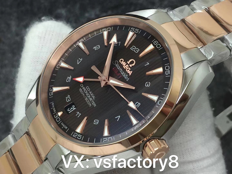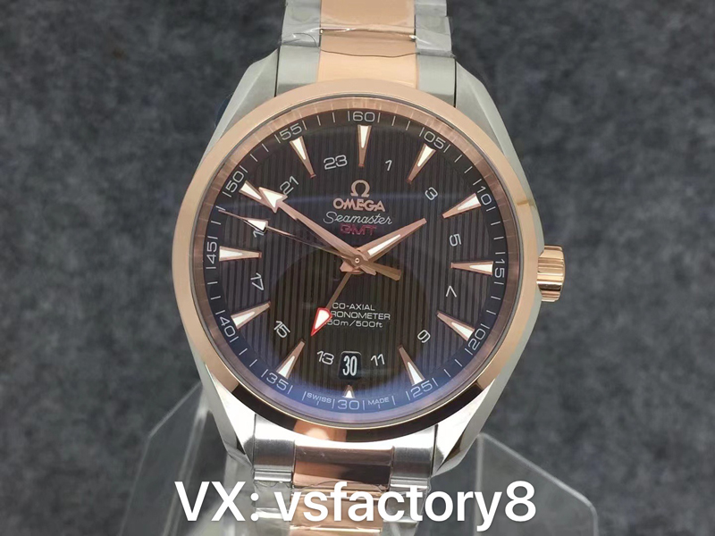 VS廠手表官網(wǎng)全新歐米茄間玫瑰金海馬150米GMT復(fù)刻表, 搭載VS工廠全新1:1一體機(jī)芯,尺寸43mm全新上市!