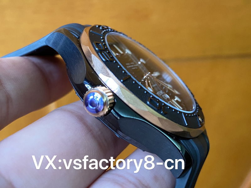 【金墨黑海馬,桀驁登場】VS廠官網(wǎng)新品海馬系列300米。43.50mm表殼、表圈、波紋圖案表盤均采用黑色氧化鋯1Zr021陶瓷制成。