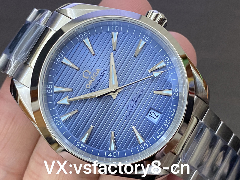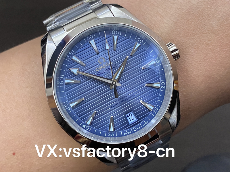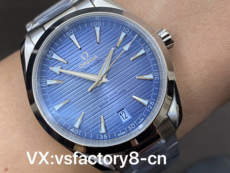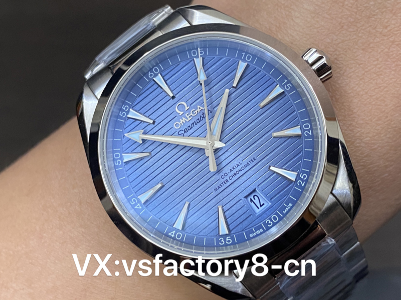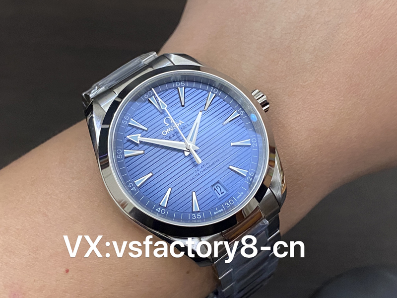 這款VS工廠歐米茄海馬150米AquaTerra的表殼為41mm,以經(jīng)拋光和拉絲處理的精鋼材質(zhì)打造,搭配同材質(zhì)精鋼表鏈。
