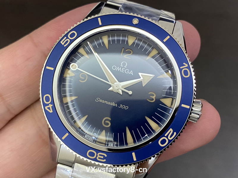 VS工廠歐米茄新一代海馬300復(fù)刻表41毫米的表殼為精鋼材質(zhì)打造,配備藍(lán)色“三明治”表盤,即雙層重疊結(jié)構(gòu)的盤面,底層覆有的Super-LumiNova夜光涂層,上層盤面則鏤刻出小時(shí)刻度和數(shù)字時(shí)標(biāo),這也是VS廠復(fù)刻表最顯著的升級所在。
