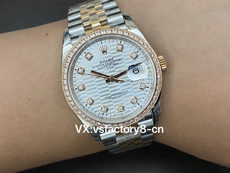 2024年VS廠四月份全新推出新款勞力士日志型系列m126281rbr-0027,也是VS廠首次推出鉆圈鉆面勞力士銀水紋日志丹東3235機(jī),對于表圈VS工廠采納的是臺灣莫桑鉆,還原了正品一致。