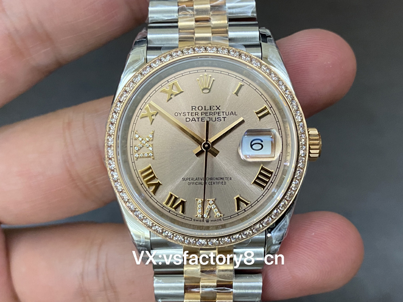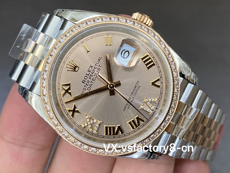 VS廠勞力士日志鉆圈粉面全面按照正品同步一致,并且實(shí)施了六點(diǎn)位置和九點(diǎn)位置都跟正品一致采納鉆石,當(dāng)然VS工廠用的是臺(tái)灣莫桑鉆,并一比一羅馬數(shù)字,不再一眼假和露破綻!